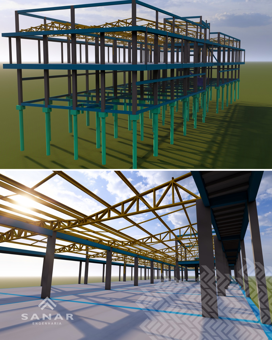Todo o desenvolvimento do projeto foi feito utilizando softwares de cálculo e modelagem da informação da construção (BIM). Projeto desenvolvido: Estrutural.