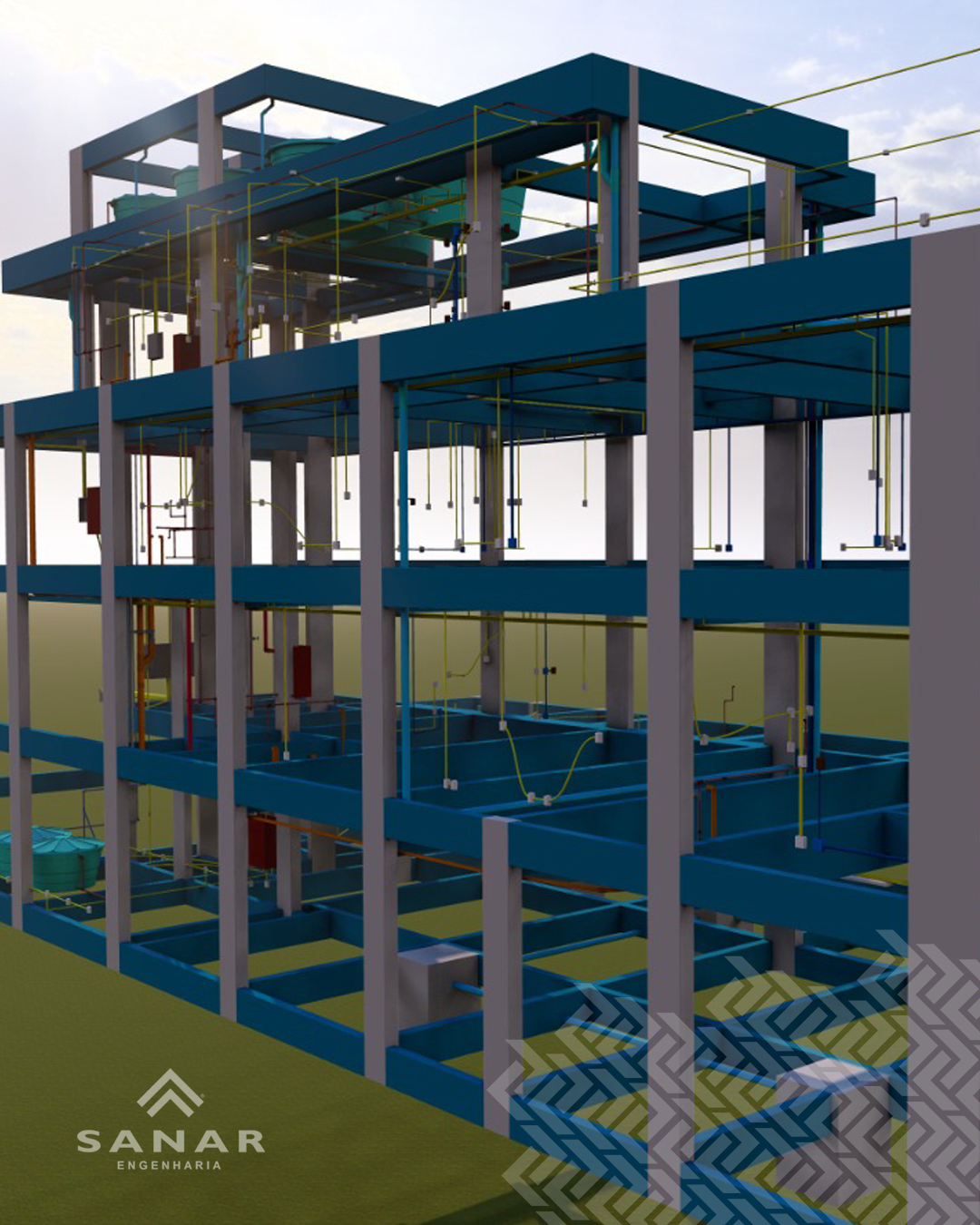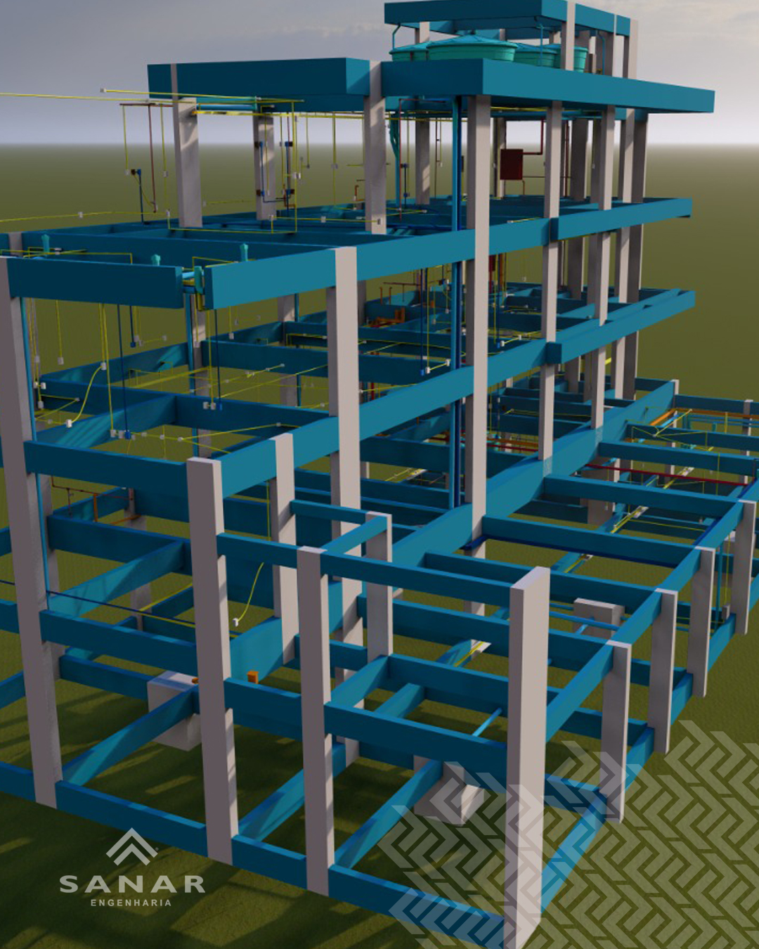 Todo o desenvolvimento do projeto foi feito utilizando softwares de cálculo e modelagem da informação da construção (BIM).